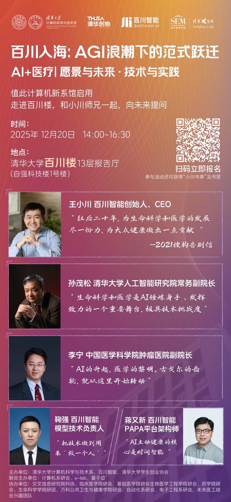 主辦:清華大學計算機科學與技術系、百川智能、清華大學學生創(chuàng)業(yè)協(xié)會