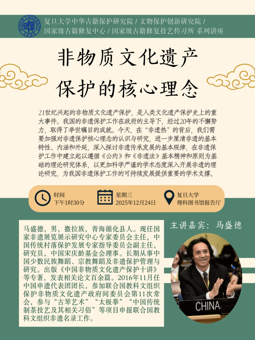 主辦:復旦大學中華古籍保護研究院、文物保護創(chuàng)新研究院、國家級古籍修復中心、國家級古籍修復技藝傳習所