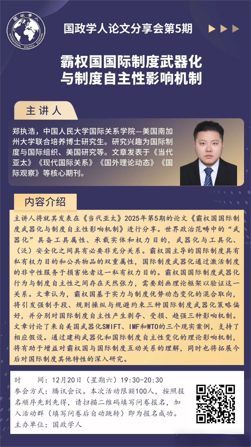 主講人:鄭執(zhí)浩(中國人民大學—美國南加州大學聯(lián)合培養(yǎng)博士研究生)