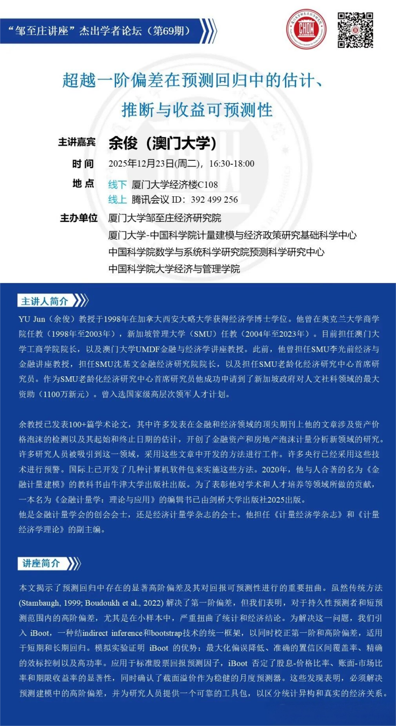 參與方式:線下:廈門大學經(jīng)濟樓C108;線上:騰訊會議 ID:392 499 256