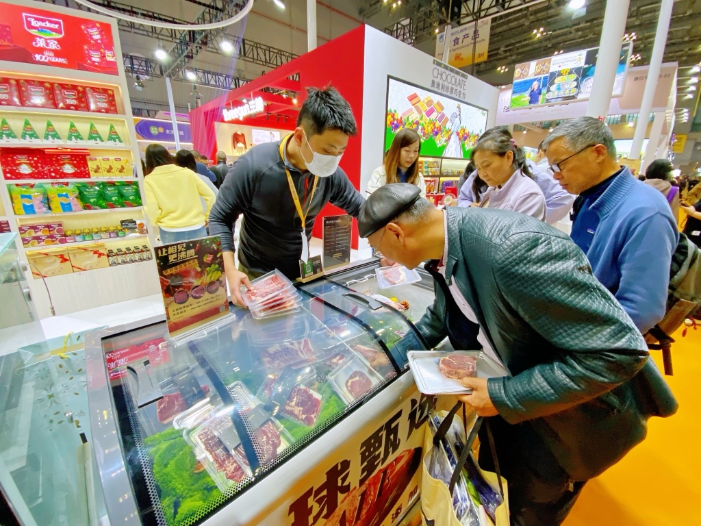 澎湃新聞(www.xinlihui.cn)記者在展館內(nèi)看到,這里的進(jìn)博會(huì)農(nóng)食產(chǎn)品、文創(chuàng)產(chǎn)品人氣很旺,很多展臺(tái)推出試吃試喝活動(dòng),部分品牌的椰子水、奶粉價(jià)格比網(wǎng)上低,吸引了眾多市民。在東方國(guó)際集團(tuán)展臺(tái),裝滿(mǎn)澳洲肥牛、巴西肩胛小排的大冰柜前圍滿(mǎn)前來(lái)掃貨的顧客。以110元成功“搶下”澳大利亞牛腱子的幾位阿姨爺叔,每人拖著一只逛菜場(chǎng)用的拖桿包,其中兩位阿姨告訴記者,他們是鄰居組團(tuán),當(dāng)天一早特地從昆山乘地鐵趕來(lái),沒(méi)有特別制訂采購(gòu)計(jì)劃,看到這里的進(jìn)口牛肉品質(zhì)不錯(cuò),價(jià)格也不貴,就當(dāng)機(jī)立斷買(mǎi)了,剛剛還買(mǎi)了韓國(guó)展商的維生素營(yíng)養(yǎng)品。
