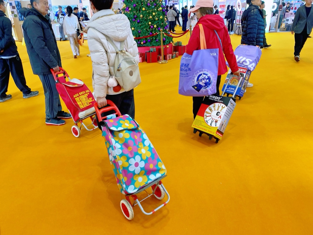 阿姨爺叔帶著拖桿包逛首屆“小進(jìn)博”,買(mǎi)了哪些好東西?