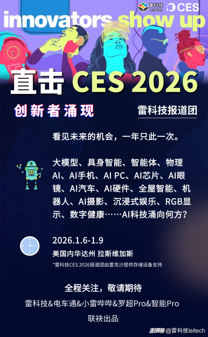 作為中國報道科技展會最悠久、最深入、最專業(yè)的新媒體,雷科技CES2026報道團正在進行緊張的前期籌備。屆時雷科技將派出史上最大規(guī)模的CES報道團,并由雷科技創(chuàng)始人兼總編輯羅超帶隊,對CES2026進行一線、專業(yè)和立體報道,敬請期待!