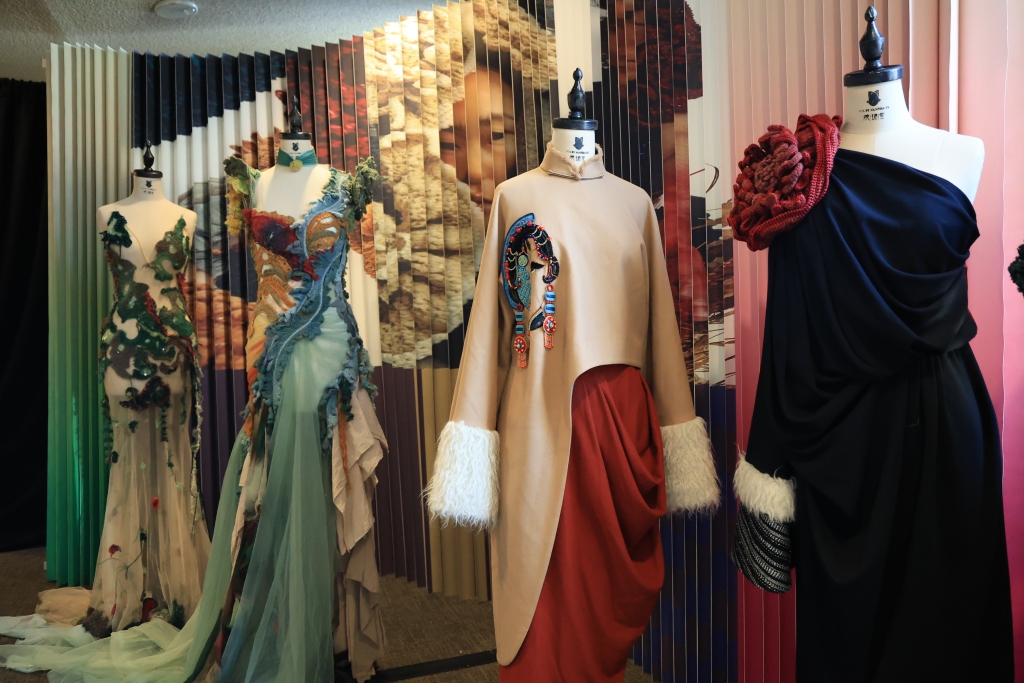 中國(guó)設(shè)計(jì)師葉青的《海派鉤針·格桑緣》系列尤為吸睛,作品將象征藏族文化的格?;▓D案與上海海派鉤針編結(jié)技藝巧妙融合,而《海上青綠》系列則探索了鉤針鏤空與網(wǎng)紗材料在可持續(xù)時(shí)尚中的表達(dá)可能。“我的創(chuàng)作希望以服飾為媒介,將東方美學(xué)與非遺傳承帶入國(guó)際對(duì)話?!比~青的創(chuàng)作理念通過作品傳遞給每一位觀展者。