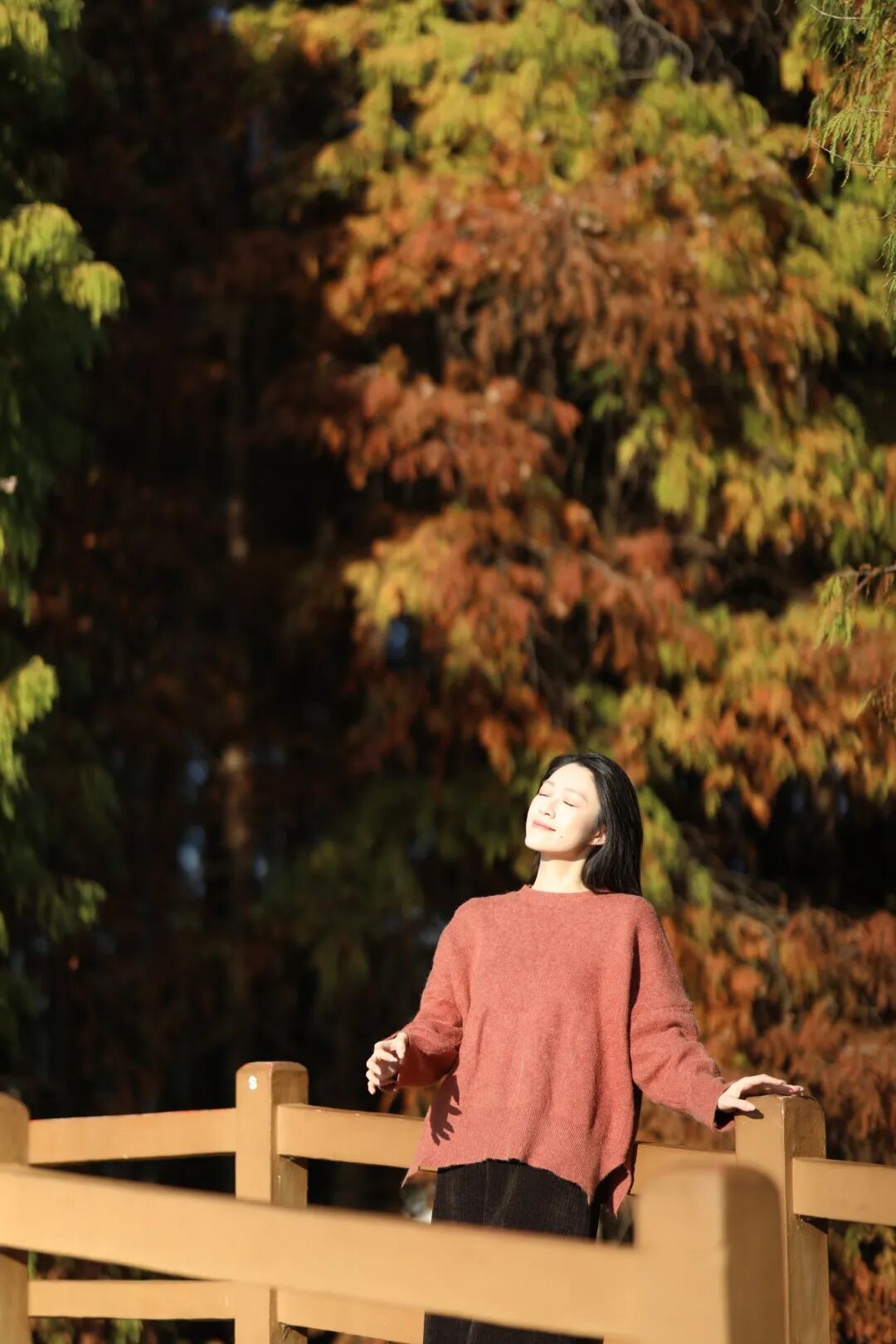 穿搭建議:可以選擇淺色系或美拉德色系的衣服,和落羽杉超搭!還可以選擇圍巾、帽子等,或者帶一本書(shū)、拾起一片落葉作為道具,避免拍照尷尬!
