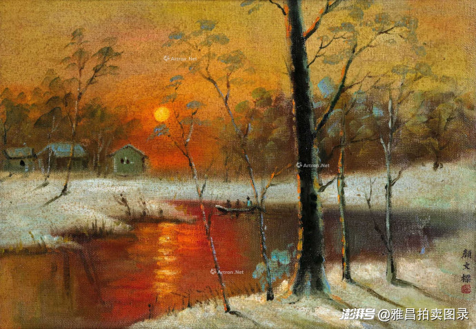 顏文樑的油畫創(chuàng)作以風(fēng)景最為人稱道,風(fēng)格凝練、光色明麗、空間感強(qiáng),傳遞出如詩(shī)的東方內(nèi)蘊(yùn)。因其作品傳世稀少,故而十分珍貴?!冻醭垦┚啊窞槠鋭?chuàng)作雪景主題佳篇,以盈尺之幅盡現(xiàn)大氣從容。作品集合了小船、流水人家的元素,捕捉初晨日照融雪的瞬間之美,每一落筆皆恰到好處,將冬日暖陽(yáng)的光輝灑向觀者心中。顏文樑在巴黎高等美術(shù)學(xué)校求學(xué)期間,深研印象派的光色理論,以東方特有的詩(shī)意筆觸捕捉光影流轉(zhuǎn),在具象描繪中營(yíng)造出空靈的意境——這正暗合海德格爾所說(shuō)的“作品建立世界并制造大地”。顏文樑12歲臨摹《芥子園畫譜》,1911年入商務(wù)印書館學(xué)習(xí)西畫。1922年與胡粹中、朱士杰創(chuàng)辦蘇州美術(shù)??茖W(xué)校,1928年赴法留學(xué)期間購(gòu)置石膏像460余件及圖書萬(wàn)余冊(cè)充實(shí)教學(xué)資源??箲?zhàn)時(shí)期堅(jiān)持辦學(xué),1952年蘇州美專并入華東藝專后任浙江美術(shù)學(xué)院教授、副院長(zhǎng)。1949年后創(chuàng)作《國(guó)慶十周年》《浦江夜航》等作品,1984年油畫《楓橋夜泊》獲全國(guó)美展榮譽(yù)獎(jiǎng)。1982年在中國(guó)美術(shù)館舉辦個(gè)人畫展,1988年5月1日于上海逝世。1997年顏文樑紀(jì)念館在蘇州美專舊址開館。2023年其作品被國(guó)家文物局列入一律不準(zhǔn)出境名單。顏文樑是20世紀(jì)初中國(guó)研究色彩和透視最為深入并有理論著述的學(xué)者型畫家,在油畫語(yǔ)言中表達(dá)民族審美心理,同時(shí)借鑒庫(kù)爾貝寫實(shí)主義藝術(shù),心慕手追印象派莫奈、畢沙羅等作品的精華。顏文樑在留法期間的很多油畫作品已經(jīng)被認(rèn)為達(dá)到了當(dāng)時(shí)歐洲當(dāng)代印象派大師的水平,擁有歐洲油畫色彩的修養(yǎng)和光色魅力,以及精致、細(xì)膩、樸實(shí)中帶有燦爛的畫面結(jié)構(gòu),加上落款清雅的毛筆書法和印章,反映了中國(guó)人獨(dú)有的文化積淀和民族氣質(zhì)。