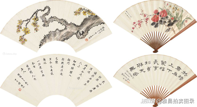 壬戌1922年作 癸亥1923年作 甲子1924年作 為嚴(yán)獨(dú)鶴作百花齊放 隸書 成扇 扇面