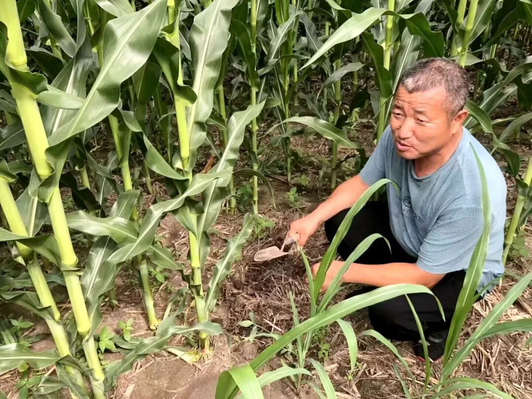 在位于九臺(tái)區(qū)紀(jì)家街道的保護(hù)性耕作示范基地,鳳財(cái)農(nóng)業(yè)機(jī)械化農(nóng)民專業(yè)合作社理事長張鳳財(cái)觀察玉米長勢(shì)。