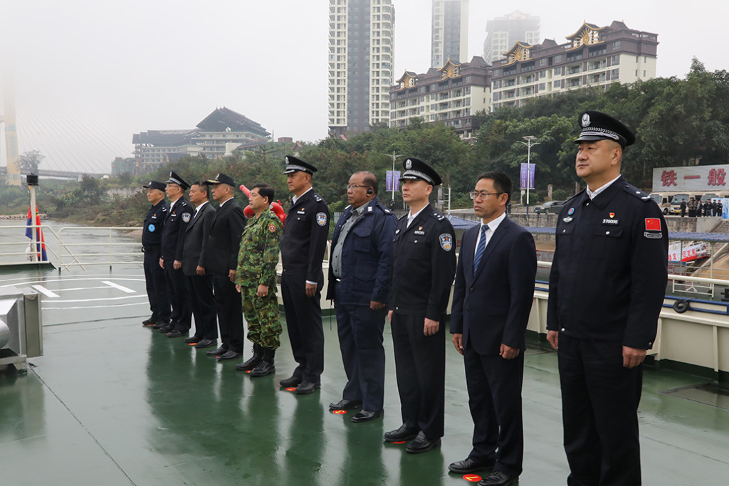 中國公安部國際合作局二級巡視員王鋼、瀾湄執(zhí)法合作中心秘書長尤小文、中國云南省公安廳副廳長李力、老撾國防部邊防軍指揮長溫坎、緬甸警察部隊水警局局長內(nèi)莫德、泰國第五警區(qū)副司令諾帕敦分別率團(tuán)出席活動,中老緬泰四國共派出執(zhí)法隊員121人、執(zhí)法艇10艘參加演練。
