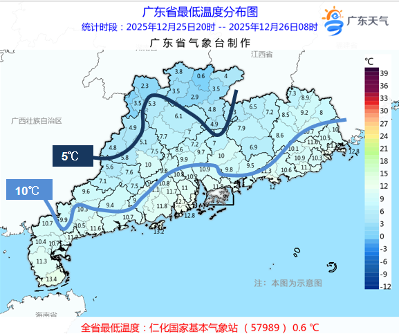 厚衣服都穿上了嗎?今天(26日)早晨的最低氣溫,粵北大部和珠三角北部氣溫在5℃以下,局部出現(xiàn)了霜凍,10℃線也壓到了中南部。 冷空氣降溫從粵西北開(kāi)始,“開(kāi)天”(云開(kāi)見(jiàn)日)也從粵西北開(kāi)始。26日早晨,韶關(guān)、清遠(yuǎn)北部云層漸開(kāi)。不過(guò)在廣東中南部,26日白天低層弱切變和濕區(qū)仍在徘徊,密密的云層難消,全省氣溫依然低迷。 展望27-29日,冷高壓逐漸東移,全省大部轉(zhuǎn)偏北風(fēng),白天云少了,陽(yáng)光漸出,氣溫緩升。28日,全省大部最高氣溫又有望升到20℃。不過(guò)由于晴空輻射,早晨還是很冷,27日早晨最低氣溫與26日持平或略降,可別急著減厚衣服哦。