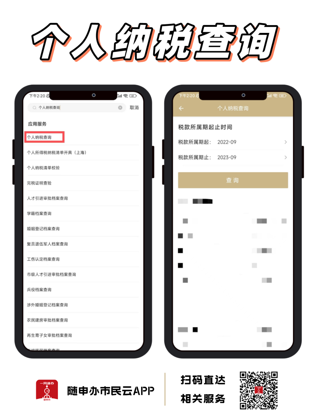 “隨申辦市民云”APP【個人納稅查詢】服務(wù),可查詢個人納稅記錄。