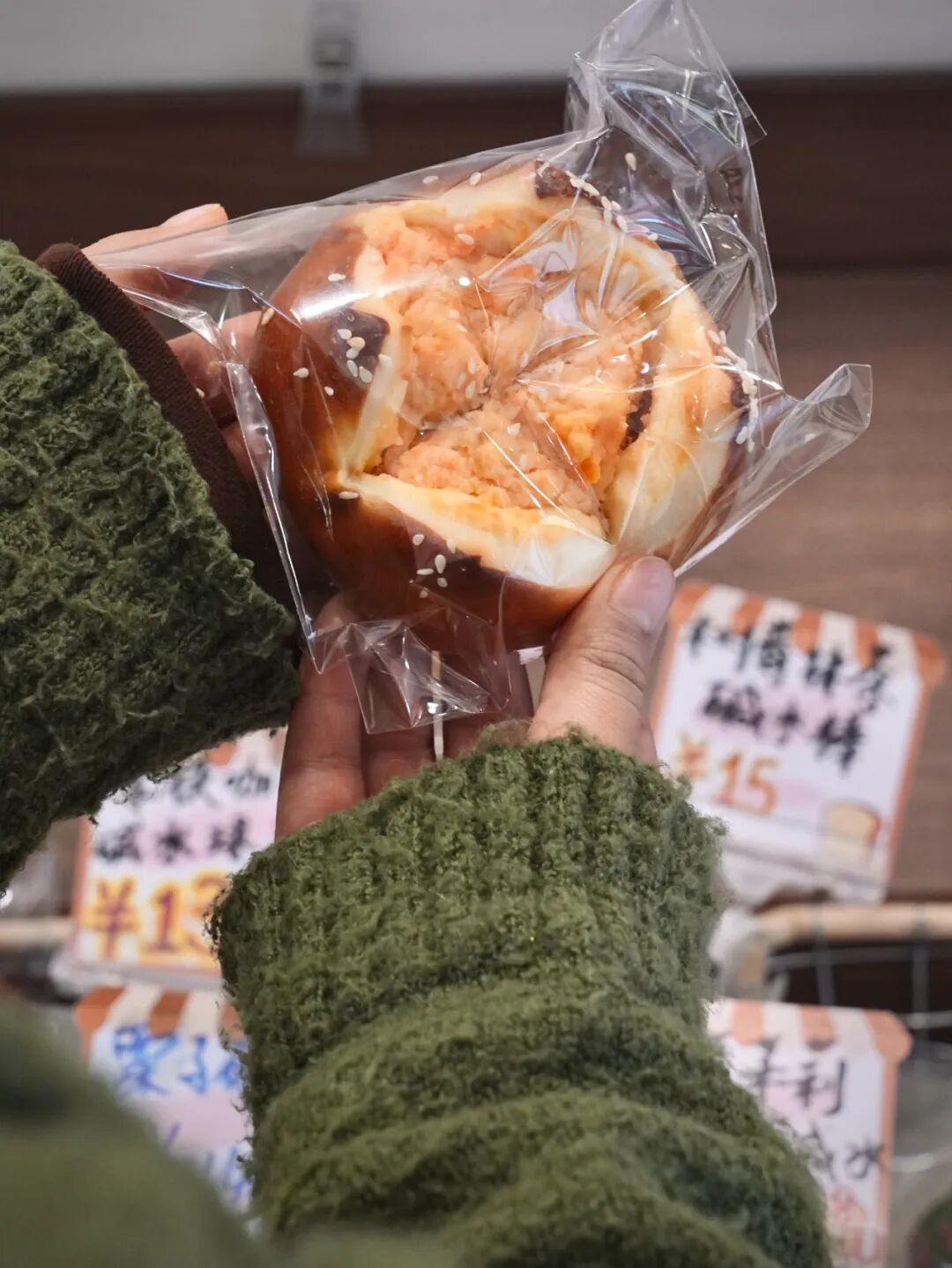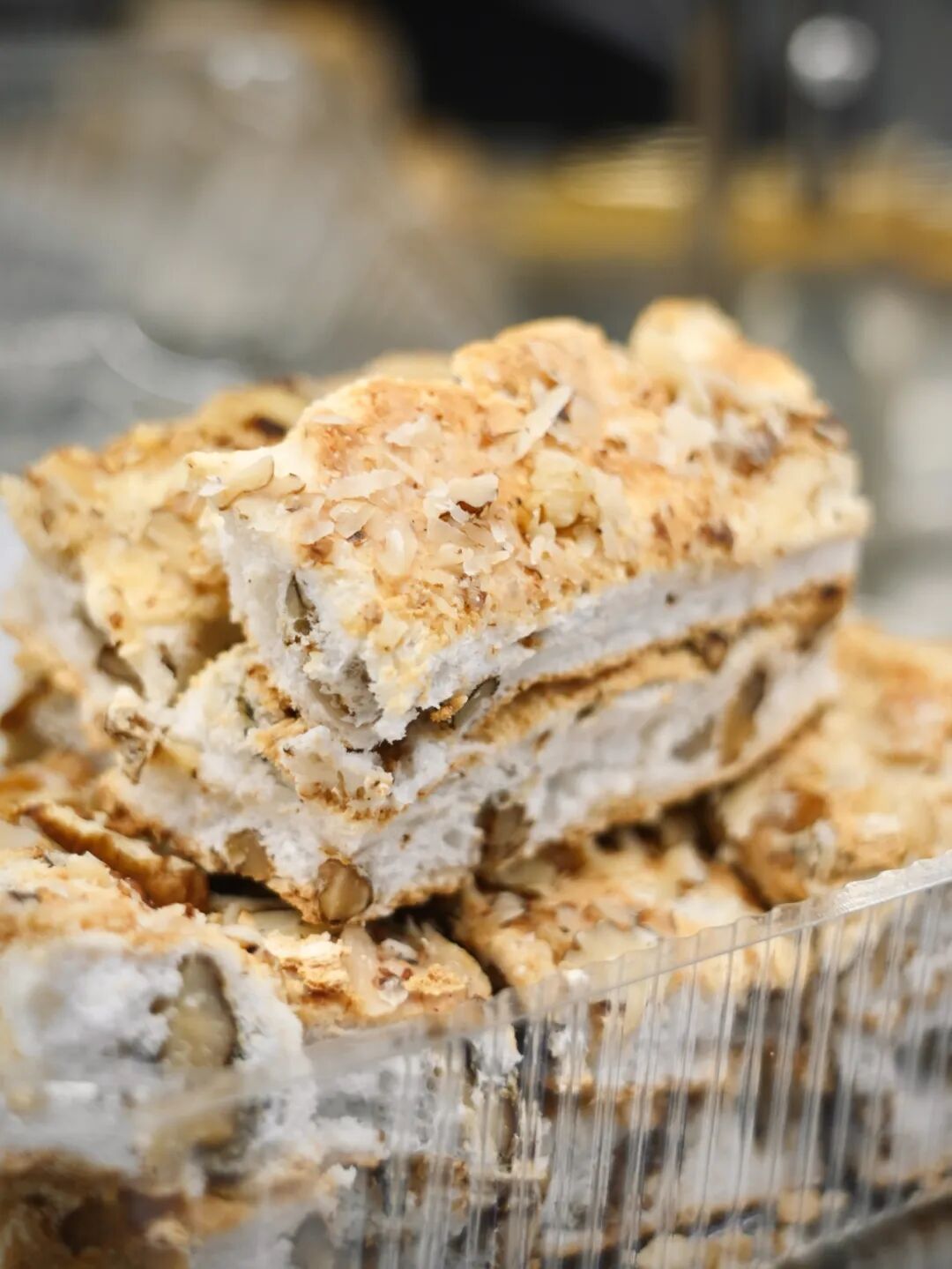 外殼酥脆,內(nèi)里卻保持柔韌,混著堅(jiān)果碎,越嚼越有回甘。