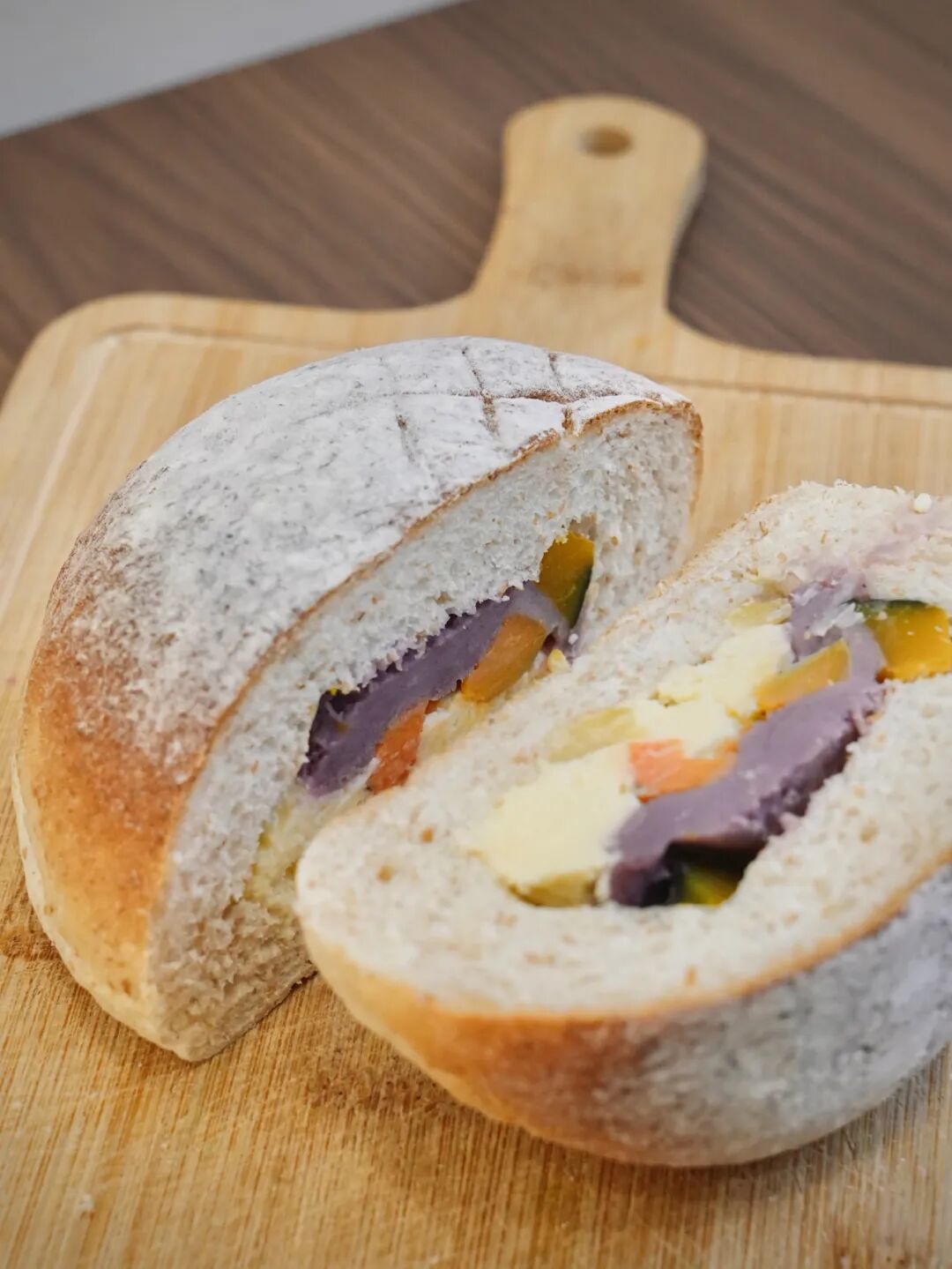 掰開(kāi)來(lái),南瓜、紫薯、乳酪……光是豐富的餡料就足以豎大拇指。