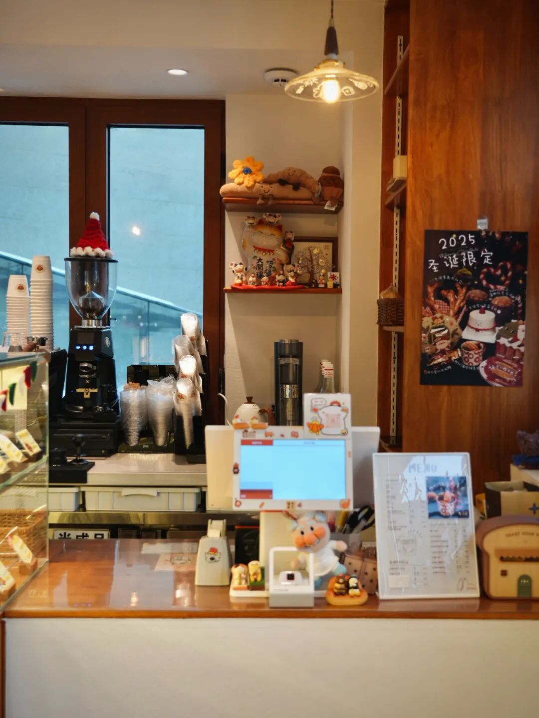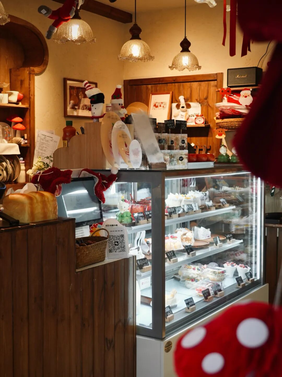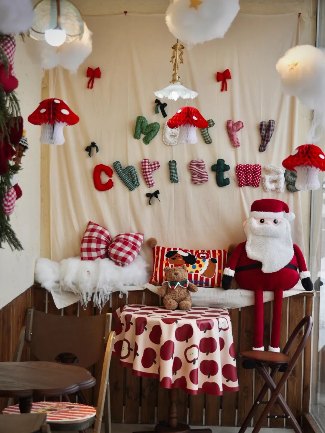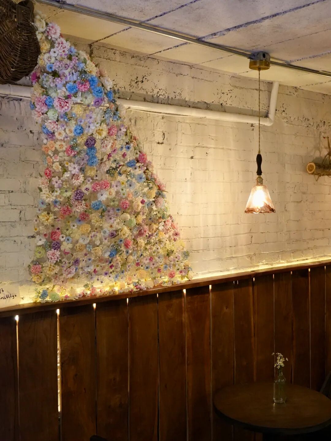 這家店有著大面積的木頭元素,墜著幾朵“棉花云”。