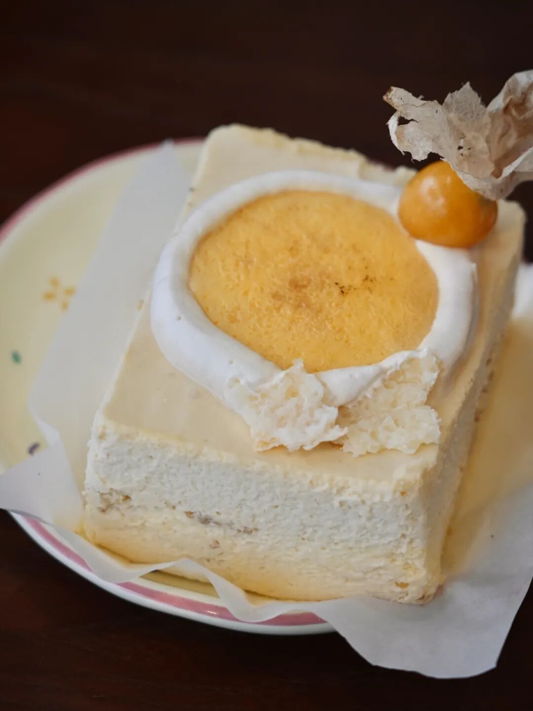 招牌奶皮子巴斯克,融合了內(nèi)蒙的炒米、云南的乳扇。