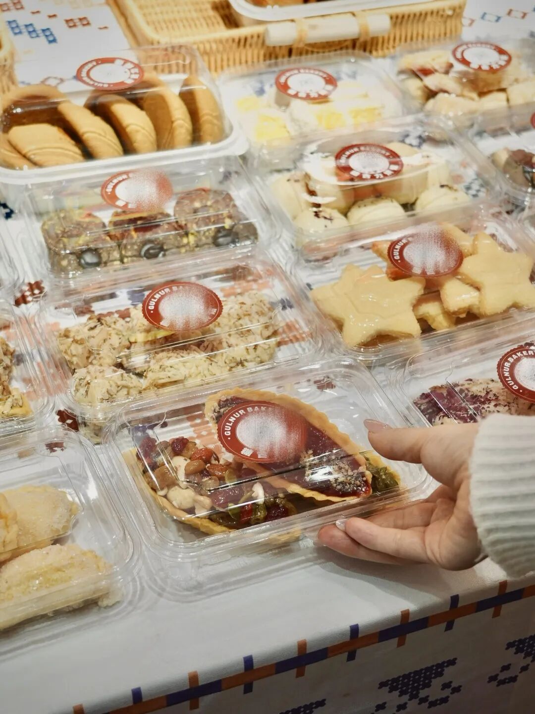 禮盒裝的新疆糕點(diǎn)能?chē)L到好幾種不同的口味。