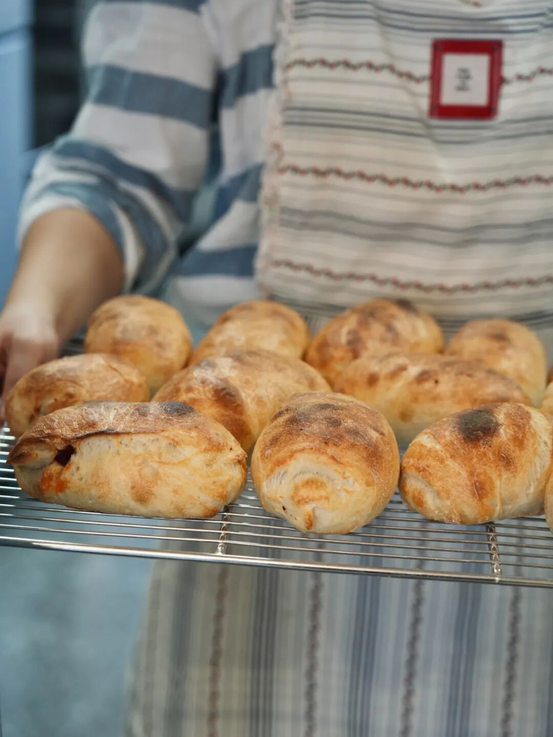 操作間沒(méi)有玻璃隔擋,面包師傅就在眼前揉面、整形、送進(jìn)烤箱。