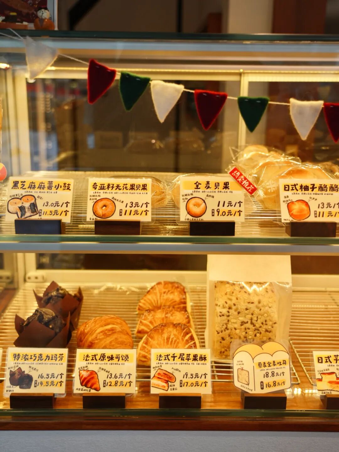 店內(nèi)主打低糖油的面包,共 11 種品類(lèi)。