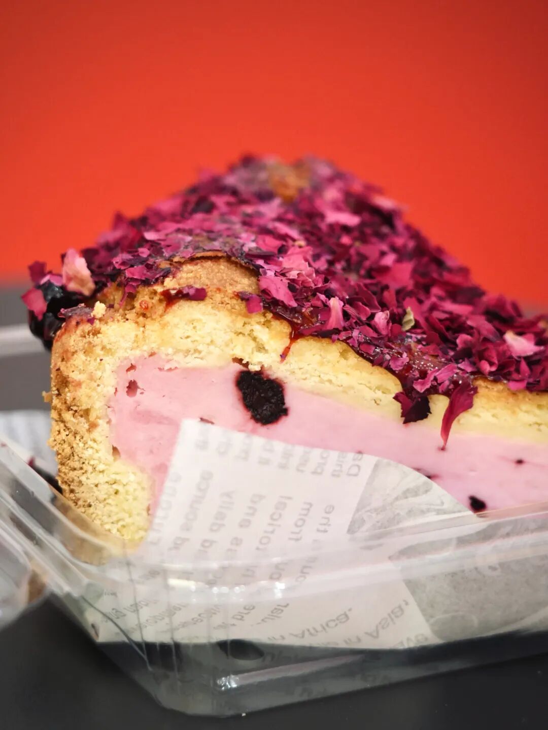 頂部鋪了一層玫瑰花瓣,顏色熱烈。