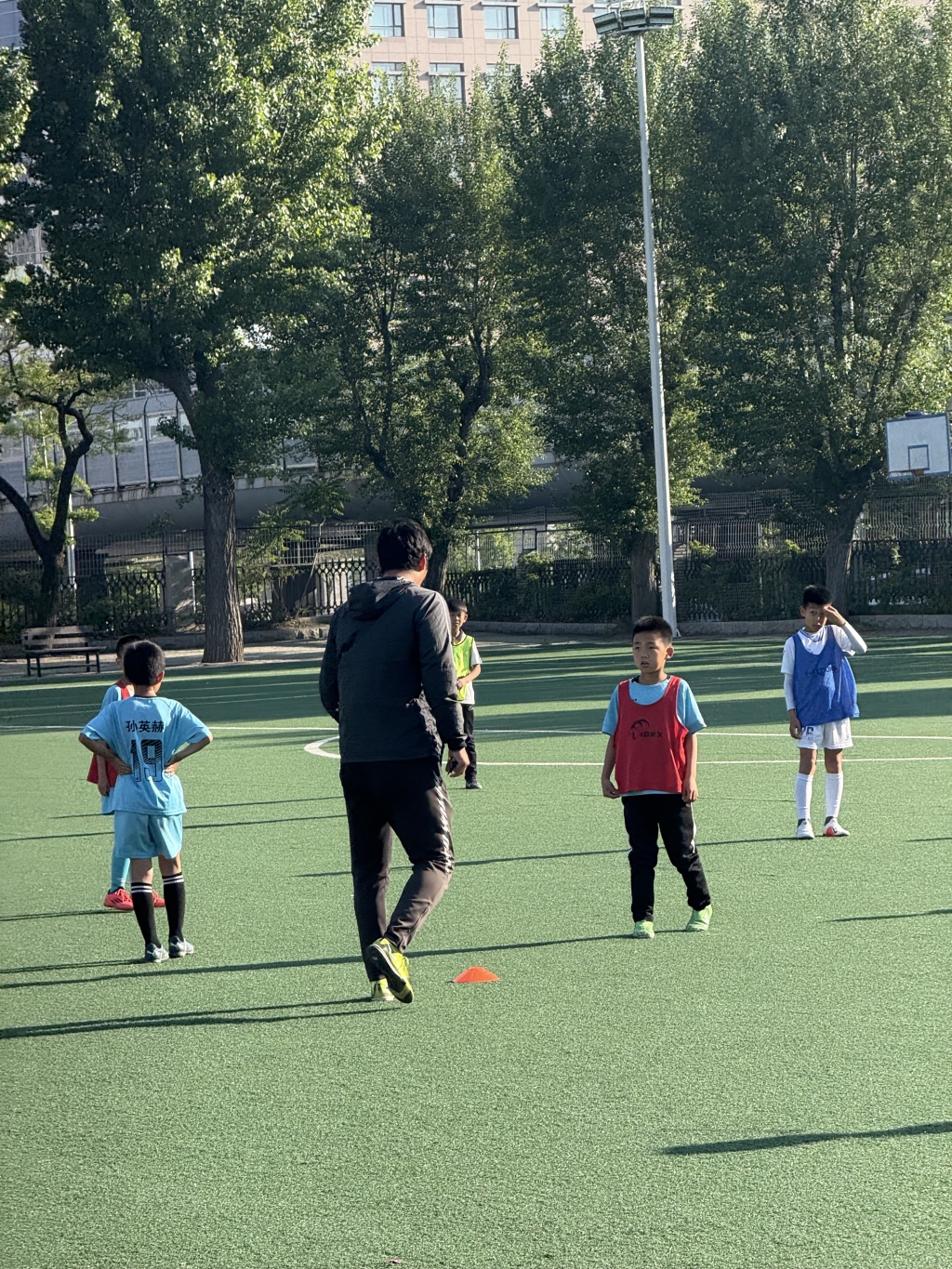 每天,六七年級學生都會坐著大巴外出訓練,往返需要將近一個小時,而低年級學生則在五人制球場訓練。