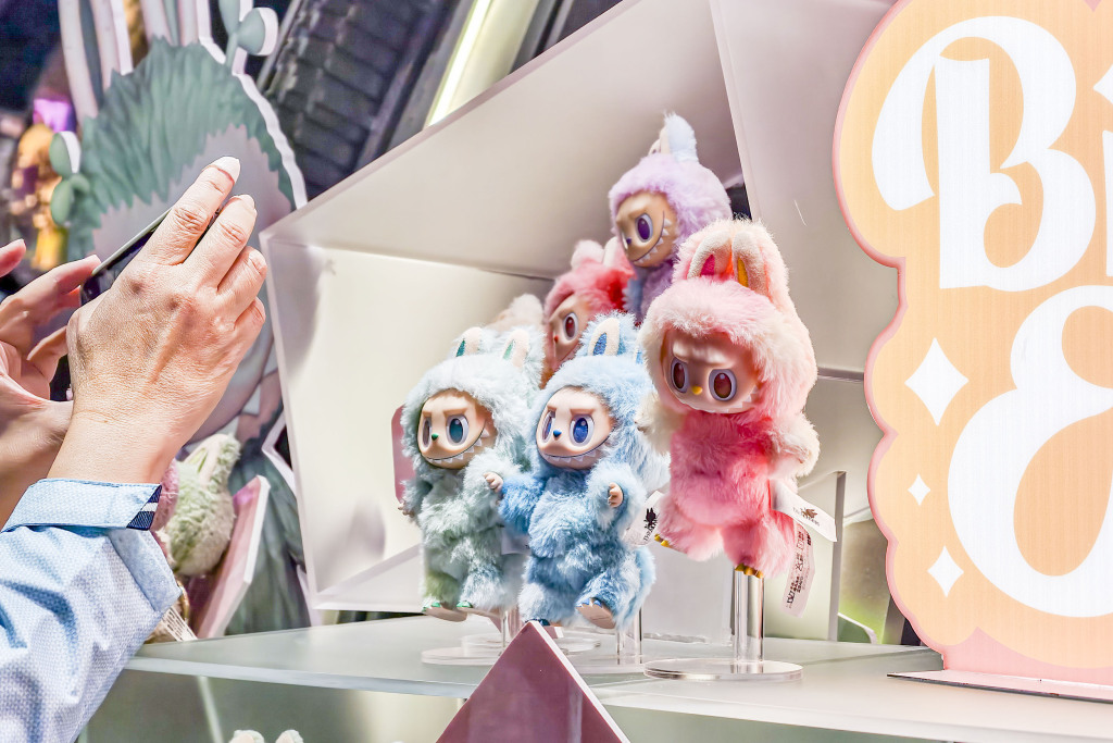 2025年5月24日,上海南京路步行街上的一家泡泡瑪特門店,拉布布 “前方高能” 系列搪膠盲盒展示。圖源視覺中國