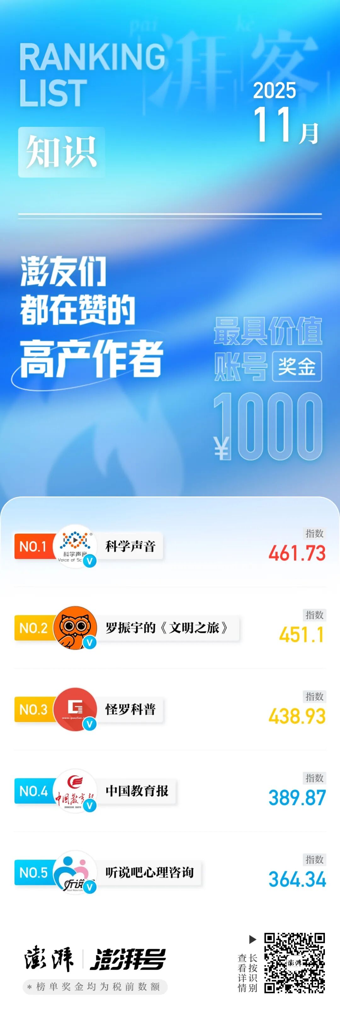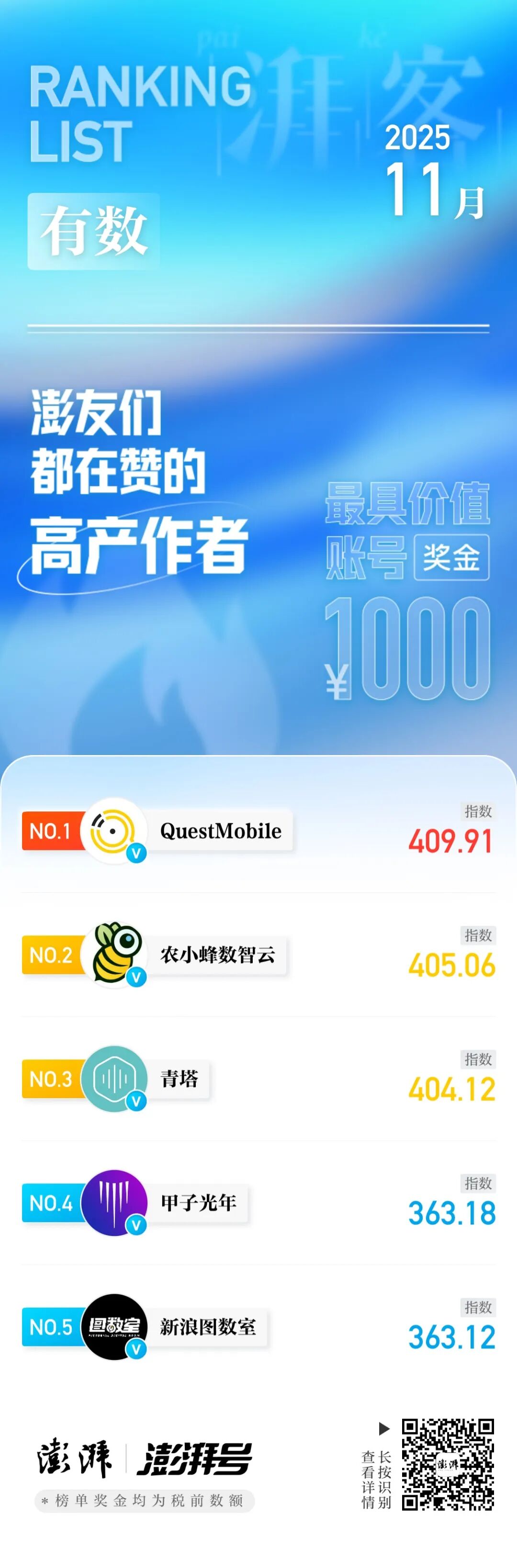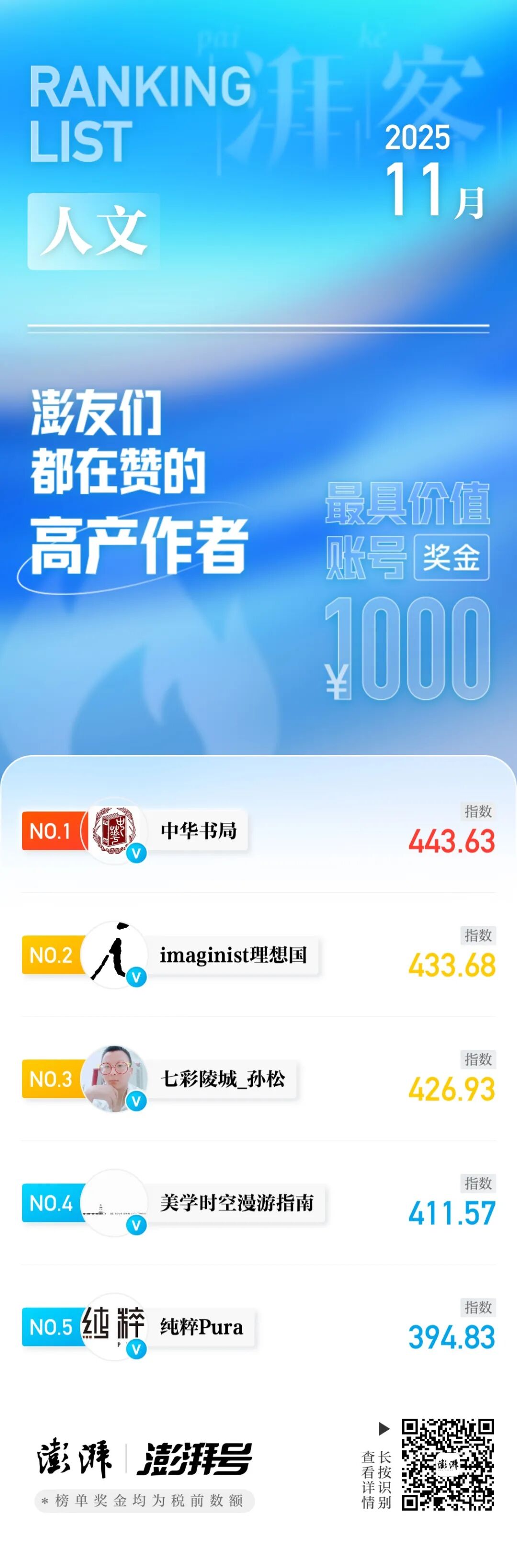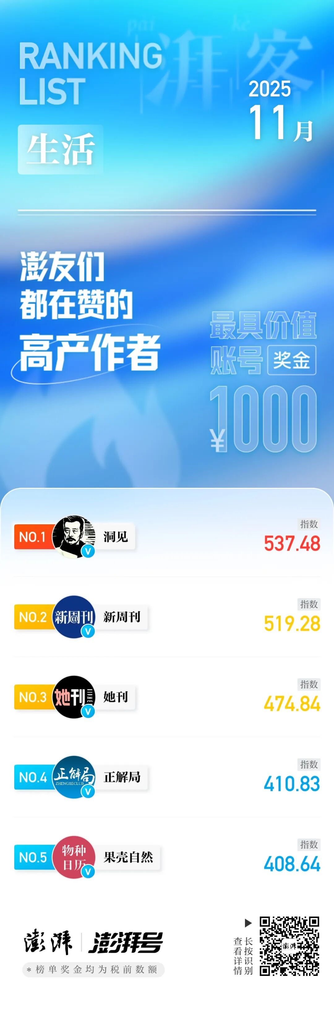 湃客指數(shù)11月榜|澎友們都在贊的高產(chǎn)作者