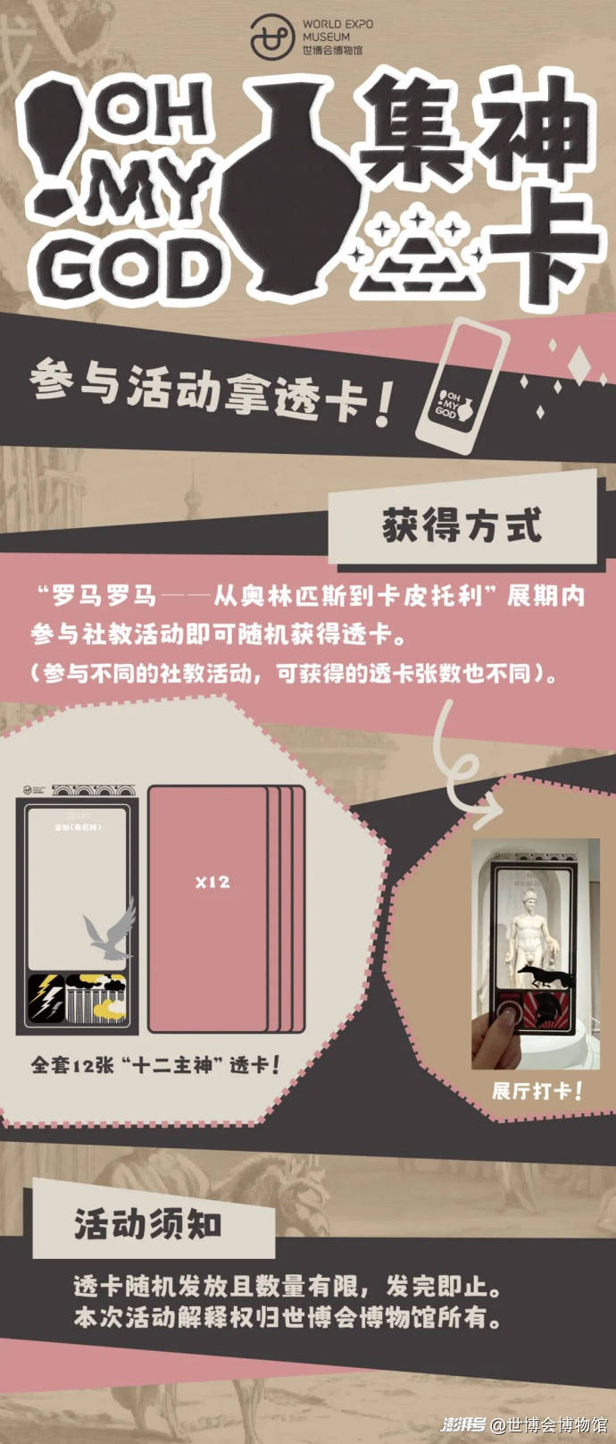 費(fèi)用:48元/組(每票一份材料,因涉及活動物料準(zhǔn)備,活動開始前24小時(shí)不接受退款,活動票不含羅馬展門票)