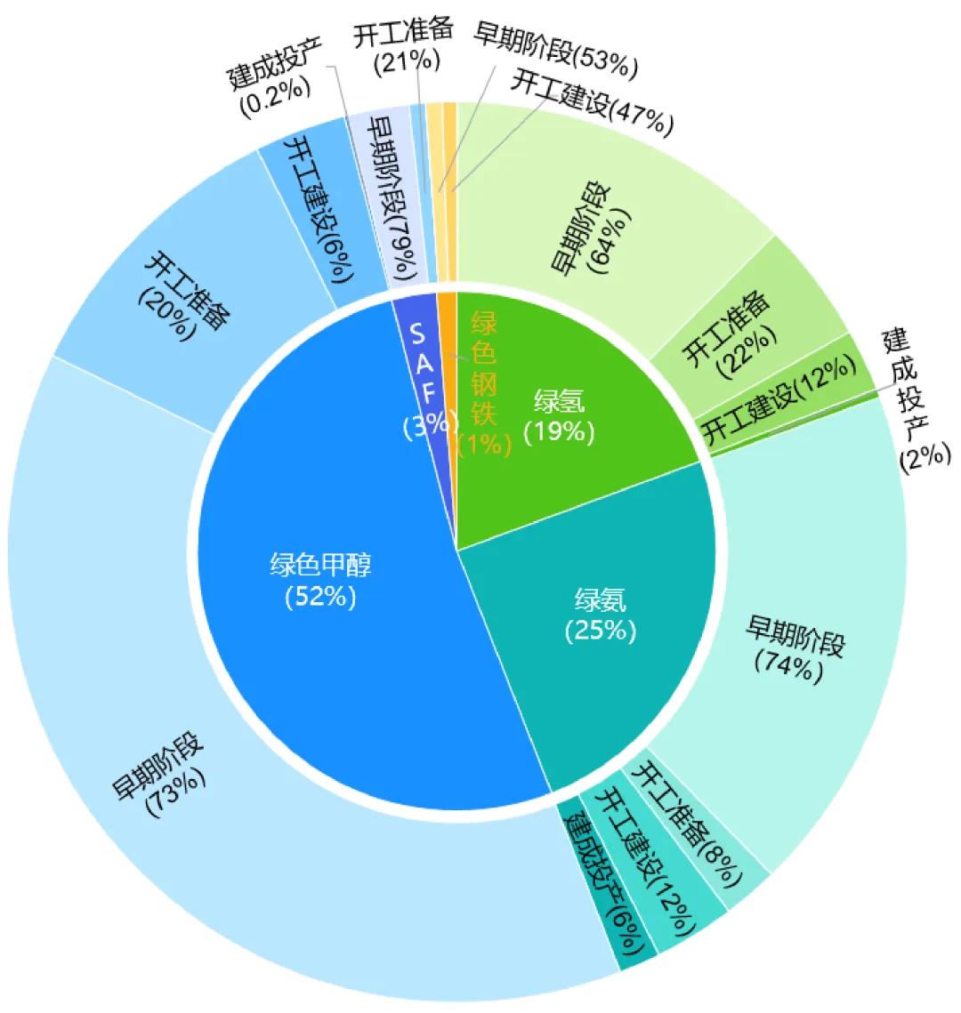 圖2 2025年綠色氫氨醇項(xiàng)目進(jìn)展(按氫當(dāng)量比例)