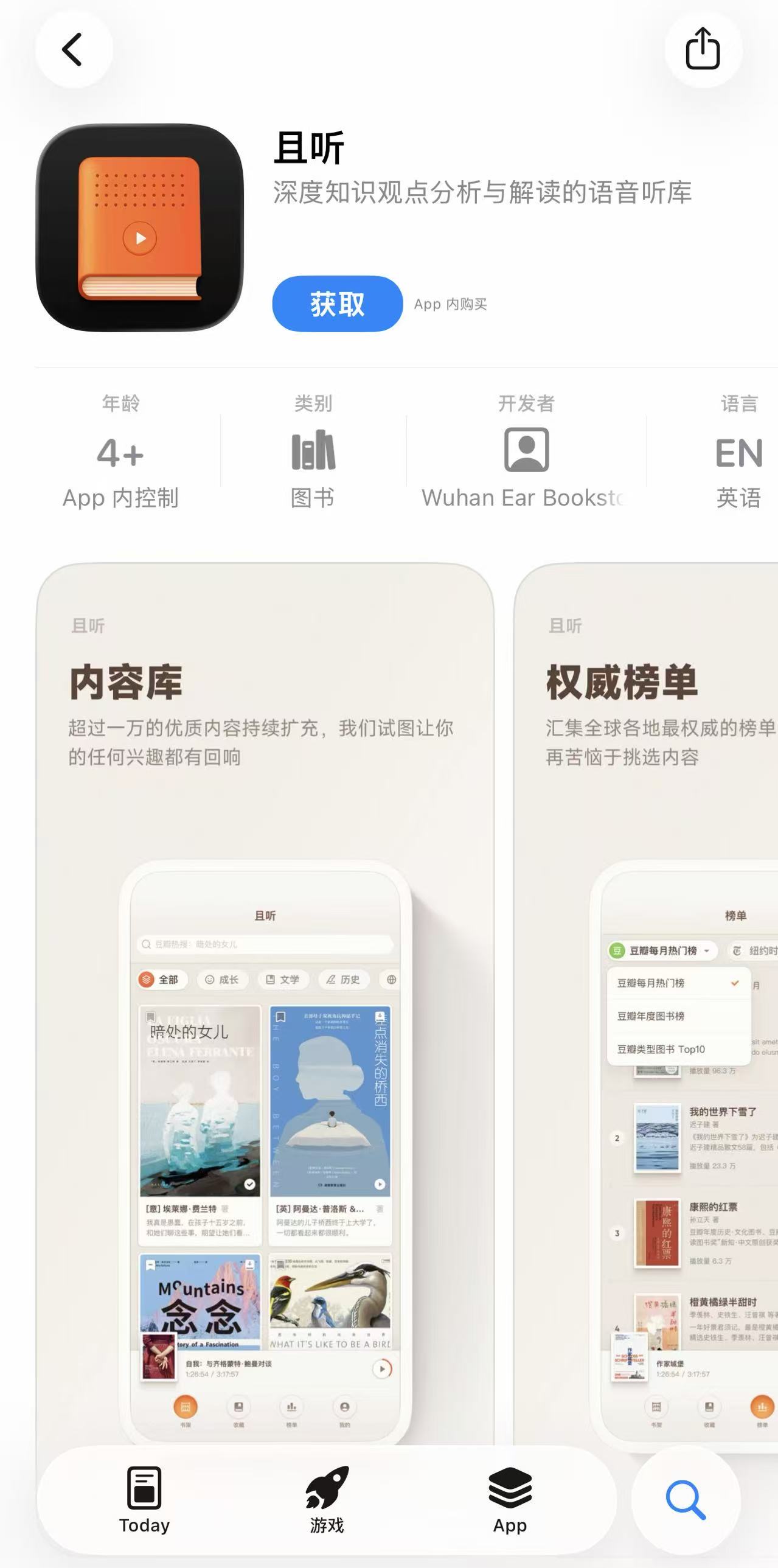 「且聽」,包括深度內容庫(覆蓋經典著作與前沿出版物)、權威榜單系統(tǒng)(整合各大圖書排行榜數(shù)據(jù))、擬真音色引擎(提供多種風格化 AI 語音)、文音對照功能(實現(xiàn)音頻與精華文本同步呈現(xiàn))等四大核心功能模塊。