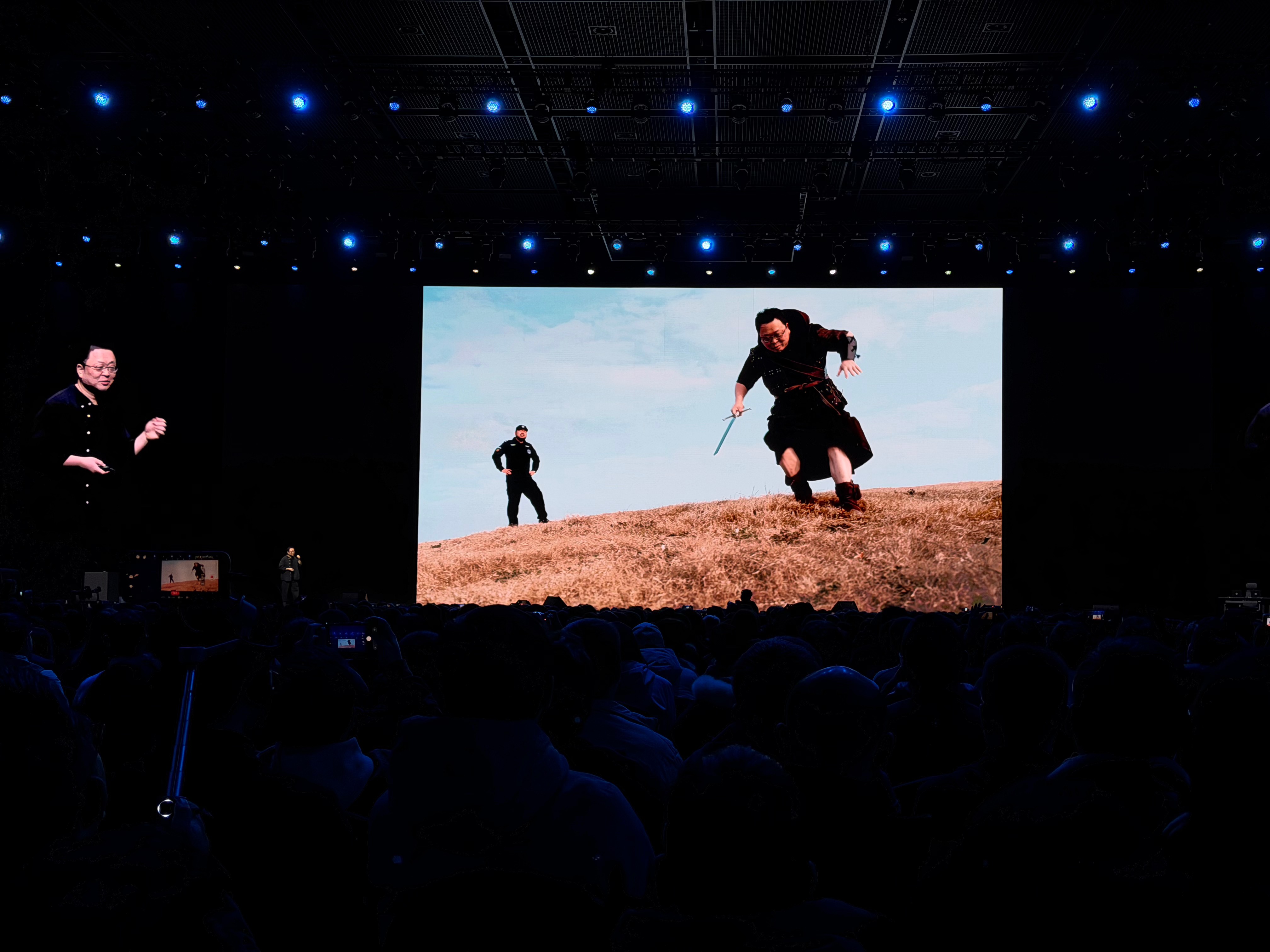 10 點,會場上空飛起的影翎 Antigravity A1 全景無人機,成了老羅與現(xiàn)場觀眾的互動神器,全場情緒進一步推高。