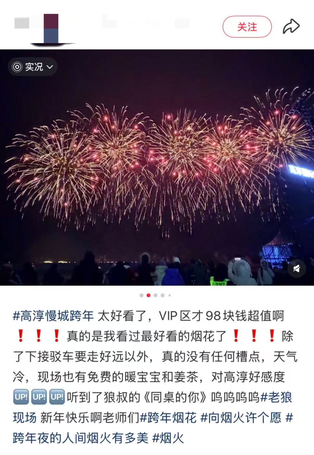 當(dāng)然,真誠(chéng)的底色永遠(yuǎn)是精彩的內(nèi)容本身。當(dāng)老狼的《同桌的你》引發(fā)萬(wàn)人大合唱,當(dāng)108節(jié)板龍?jiān)凇洱埻酢返膿u滾聲浪中破陣而出,當(dāng)數(shù)萬(wàn)發(fā)煙花與音樂(lè)節(jié)奏精準(zhǔn)共振、照亮夜空——所有的用心服務(wù),最終都融匯成了那個(gè)“震徹心扉的輝煌時(shí)刻”。難怪有網(wǎng)友激動(dòng)地寫(xiě)下:“VIP區(qū)才98塊錢(qián)超值?。。?!真的是我看過(guò)最好看的煙花了!”