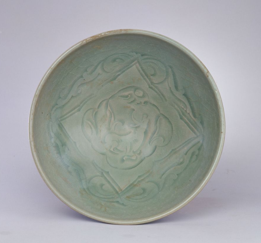 宋 耀州窯青釉刻花嬰戲圖碗