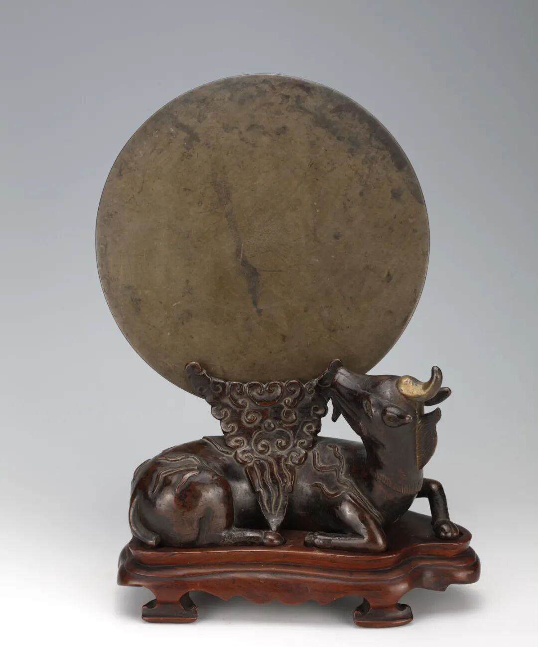 以上把“牛和月亮”這一紋飾所衍生出的多元解釋——“犀牛望月”的雅化、“吳牛喘月”的俗世關(guān)懷與“坤牛望月”的哲學民俗一同表述,并非是“非此即彼”絕對,而是表達更多的可能,引人思考和探究,文物不僅是過去的產(chǎn)物,也是歷代觀者共同書寫未完成的文化文本,它就像一面朦朧的鏡子,每個時代,每種眼光望過去,都照見自己的影子。