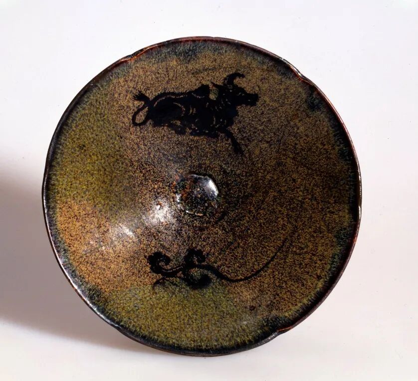 南宋 吉州窯漏花犀牛望月紋盞
