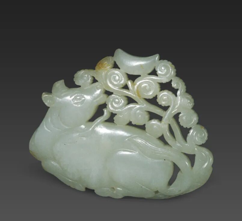 在中國傳統(tǒng)宇宙觀中,“坤”為八卦中的“地”卦,象征承載。而溫順的牛自古被視為生存修養(yǎng)的重要農(nóng)耕幫手。月亮在傳統(tǒng)中亦屬“陰”,與“坤”同質(zhì),共喻母性、滋養(yǎng)與承托。若將“牛月組合”視為“坤牛望月”,則此紋飾便脫開了具體典故,上升為對天地陰陽和諧,萬物順時而作的宇宙觀的表達。