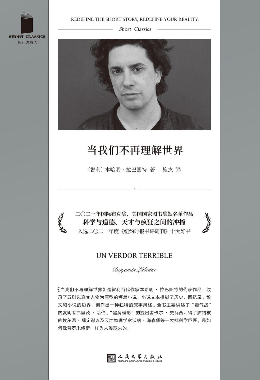 《當(dāng)我們不再理解世界》第一次在我眼前撬動(dòng)這條邊界,本哈明·拉巴圖特的這部以真實(shí)人物為原型的短篇小說集,表明了凡人滑向瘋子是多么危險(xiǎn),又是多么必然。他們無一發(fā)現(xiàn)了某個(gè)遵循非現(xiàn)實(shí)邏輯的事實(shí),或發(fā)展出一套與前人沒有一點(diǎn)相似之處的理論,這些怪東西令他們感到恐懼,因?yàn)檫@“不是文明人的頭腦——習(xí)慣性厭惡與回避所有不理解的東西——所能承受的”。小說令我們相信,就算理智與瘋狂之間真的存在邊界,這條邊界是多么脆弱。我們之所以還留在一邊享受安全,僅僅是因?yàn)槲覀兺谀硞€(gè)失重的時(shí)刻之前,對(duì)表象之下的秘密根系渾然不覺。我們因此認(rèn)為自己理解這個(gè)世界。