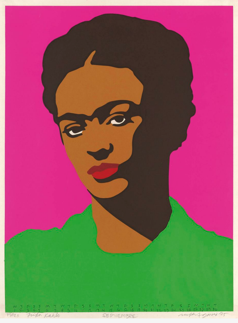 魯珀特·加西亞,《弗里達(dá)·卡羅(九月)》,1975年,紙上絲網(wǎng)印刷,舊金山美術(shù)博物館