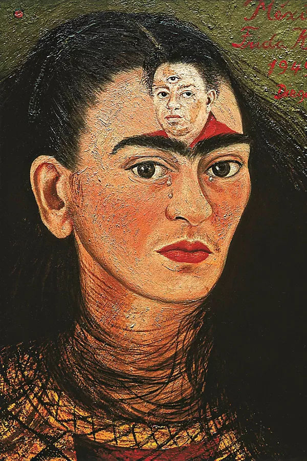 《迭戈和我》畫于1949年,是弗里達(dá)·卡羅創(chuàng)作的一幅淚流滿面的自畫像,畫中迭戈·里維拉的頭像就位于她的額頭上。這幅畫描繪了她當(dāng)時(shí)對(duì)丈夫的思念之深。