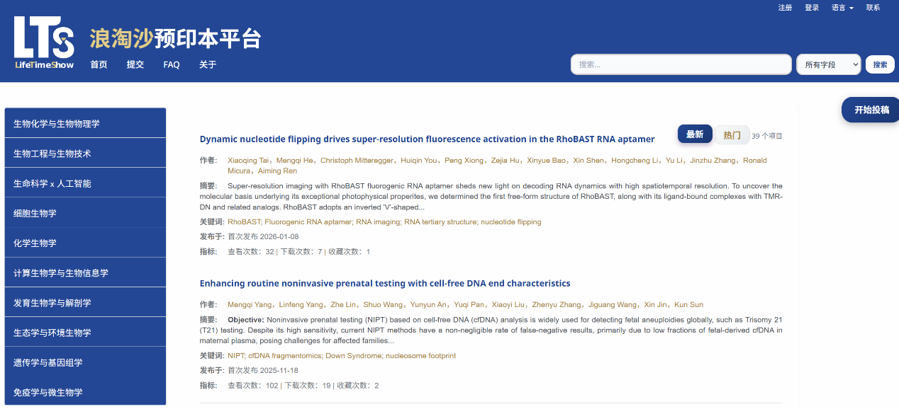 根據(jù)澎湃新聞此前報(bào)道,2025年11月21日,由深圳醫(yī)學(xué)科學(xué)院牽頭,聯(lián)合深圳灣實(shí)驗(yàn)室、清華大學(xué)、西湖大學(xué)等多家單位共同建設(shè)的“浪淘沙預(yù)印本平臺”正式上線(官網(wǎng): https://Langtaosha.org.cn)。平臺面向生命科學(xué)研究群體,提供科研成果的快速公開、版本記錄與開放獲取服務(wù),旨在推動學(xué)術(shù)交流提速增效,支持我國構(gòu)建自主可控的開放科學(xué)基礎(chǔ)設(shè)施。