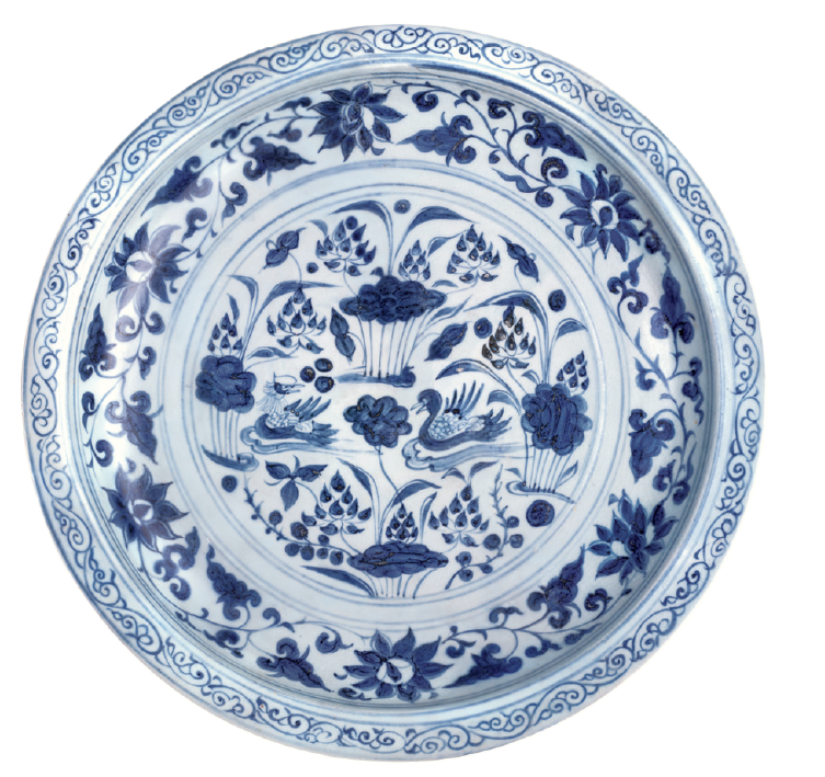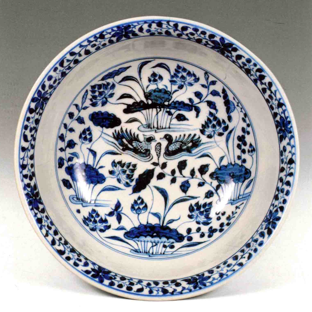 青花蓮池鴛鴦紋盤 元 伊朗國家博物館藏