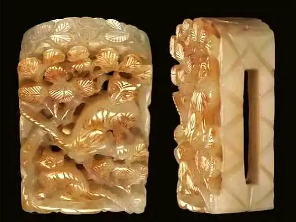 漢文化的深厚傳統(tǒng)之外,游牧民族對(duì)自然的喜愛,也是“滿池嬌”紋飾形成并固定下來的重要原因。遼金統(tǒng)治者均實(shí)行“捺缽”制度?!稗嗬彙笔瞧醯ふZ譯音,為行宮、行帳之意。統(tǒng)治者每年按季節(jié)前往相應(yīng)的捺缽地,處理政務(wù)的同時(shí)進(jìn)行狩獵等活動(dòng)。玉器中著名的“春水玉”“秋山玉”即從春捺缽和秋捺缽的場(chǎng)景演化而來。春水玉雕琢海東青(一種猛禽)在水生植物間獵捕天鵝的場(chǎng)景,秋山玉則描摹秋日山林景象。