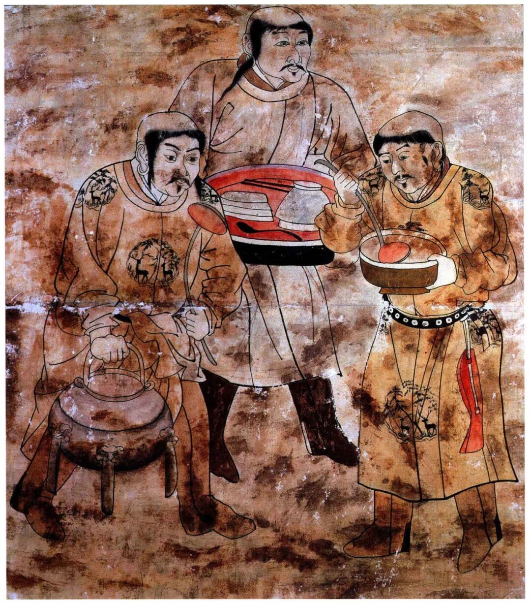 內(nèi)蒙古巴林左旗滴水湖遼墓壁畫《備酒圖》 (摹本 圖自《中國出土壁畫全集·內(nèi)蒙古卷》)