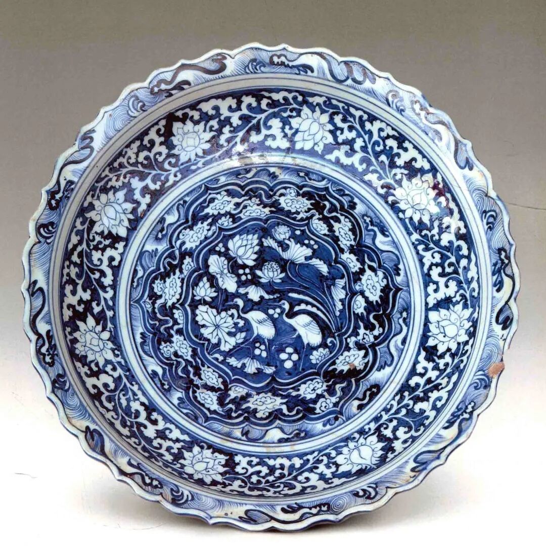 青花鴛鴦蓮紋盤 元 南京博物院藏