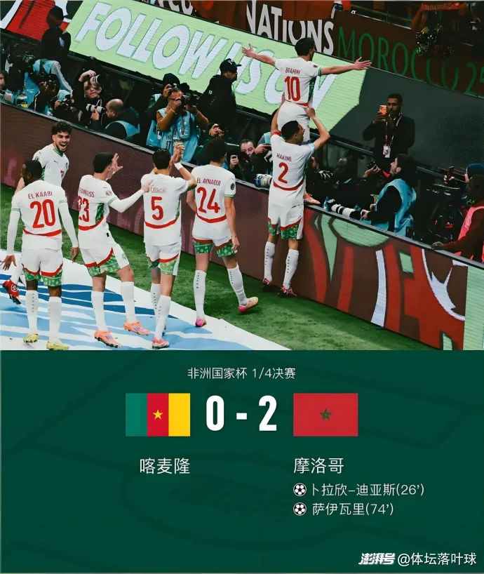在非洲杯的賽場上,總有一些故事讓人熱血沸騰,也總有一些逆襲讓人熱淚盈眶。當2026年非洲杯八強戰(zhàn)的終場哨聲響起,摩洛哥2-0擊敗喀麥隆的那一刻,整個阿卜杜拉王子體育場都陷入了瘋狂。東道主摩洛哥,這支曾經(jīng)在非洲足壇邊緣徘徊的球隊,如今以勢不可擋的姿態(tài),時隔22年再次闖入非洲杯四強。他們的崛起,不僅是足球場上的奇跡,更是非洲足球格局變遷的縮影。