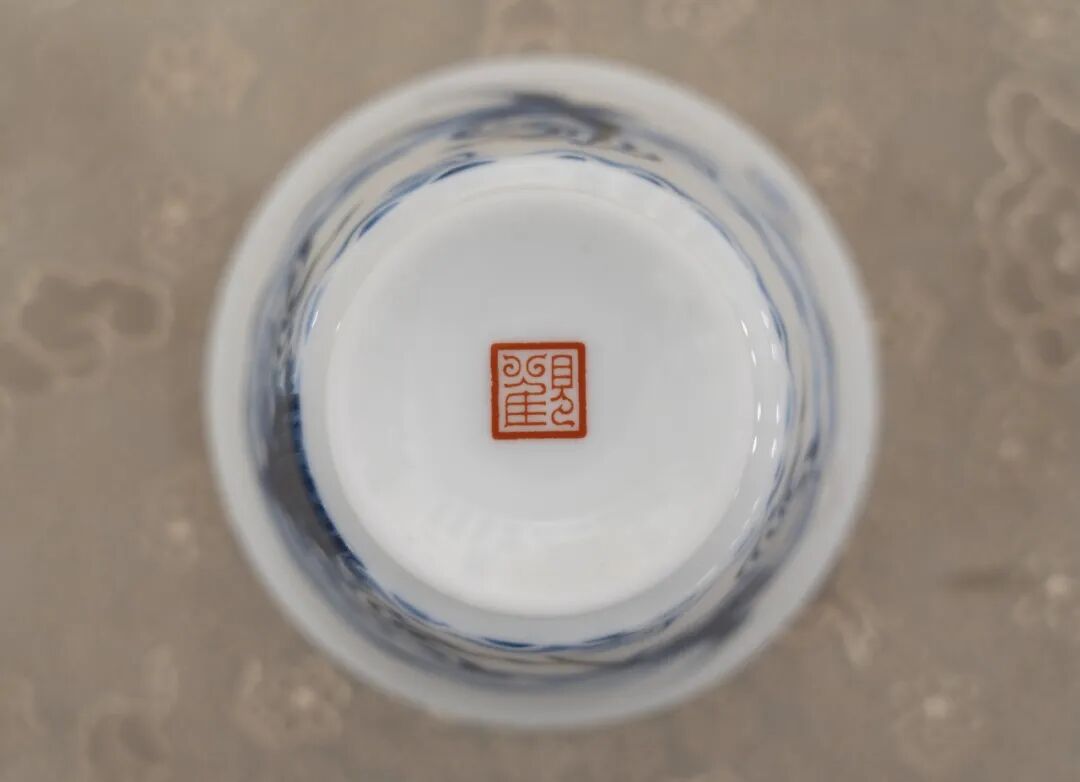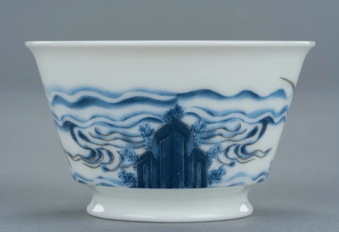 其裝飾繪畫尤其別致,通體內(nèi)外兼繪,碗外側(cè)繪松枝遒勁,翠竹扶搖,山石挺秀。