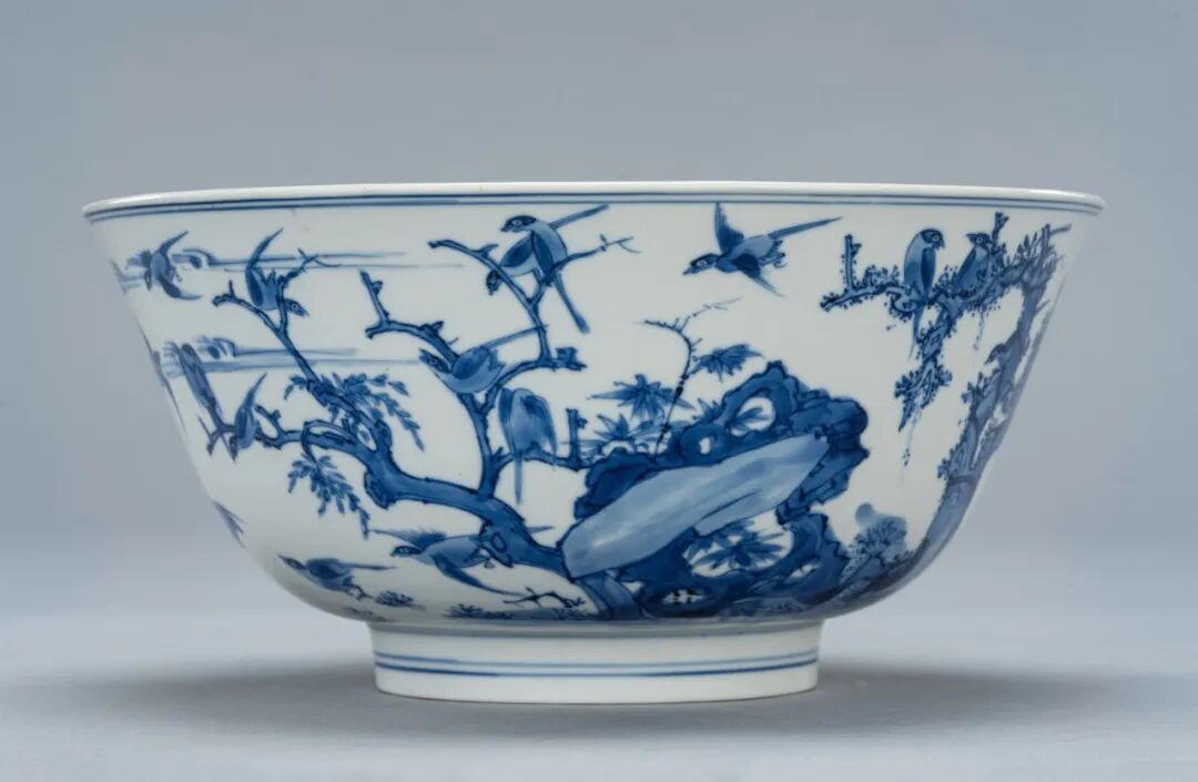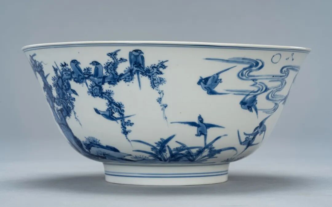 今天著重介紹的是觀復(fù)博物館另外一件以“喜鵲”為主題的文物——【清康熙 青花“日日見喜”紋碗】,及以此為靈感制作的創(chuàng)意衍生品。