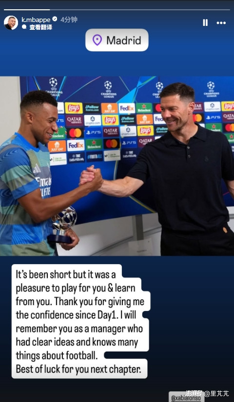 在眾叛親離的處境中,姆巴佩幾乎是阿隆索唯一的堅定支持者。阿隆索下課后姆巴佩也是第一個發(fā)了社媒,表達了對阿隆索的認可、及對他離任的遺憾。阿隆索給予了這位超級巨星絕對的戰(zhàn)術核心地位,姆巴佩應該感恩,他也配的上這份認可。然而,這份信任卻在本賽季演變成一種頗具諷刺意味的“黑色幽默”。