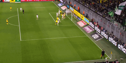 第11分鐘,多特蒙德左側(cè)角球機(jī)會(huì),施洛特貝克頭球攻門得分,為多特蒙德打破僵局。