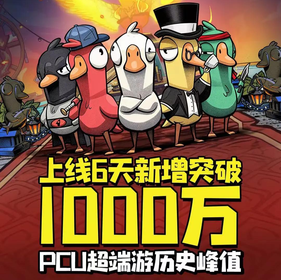 最新的《鵝鴨殺》手游由虎牙與金山世游聯(lián)合發(fā)行,官方數(shù)據(jù)顯示,上線6日《鵝鴨殺》新增用戶突破千萬,同時(shí)最高在線人數(shù)(PCU)已超越Steam端歷史峰值。