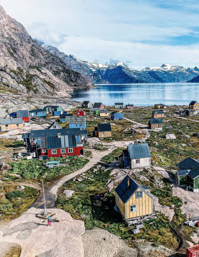 我眼前的這片峽灣正式名稱叫Tunulliark,人們更愿意叫它Eriks?ord,即埃里克峽灣,因為維京人(Vikings)“紅色埃里克”在982 年最早發(fā)現(xiàn)了格陵蘭島。埃里克駕舟沿著峽灣深入內(nèi)陸100 多公里,來到這里,就在對面峽灣山坡上一個叫布拉塔里德(Brattahlid)的地方安了家。